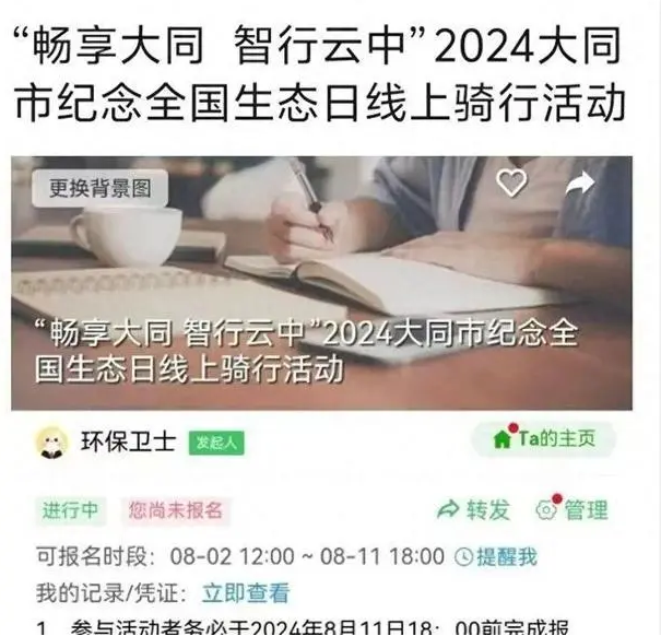 活動名稱:2024年大同市紀念全國生態日線上騎行活動