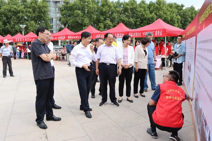 活動現(xiàn)場,晉城市委常委、市委統(tǒng)戰(zhàn)部部長、市委政法委書記石云峰,市人大常委會副主任史曉莉、市政協(xié)副主席常先勤,市人大常委會原副主任、市慈善總會會長尹紅巖,市民政局局長王濤、司法局局長傅彥虎,市慈善總會副會長張曉奎、閆通宇等,逐一走過各個攤位,認真聽取工作人員的介紹,與大家親切交流,了解他們對慈善事業(yè)的看法和建議。